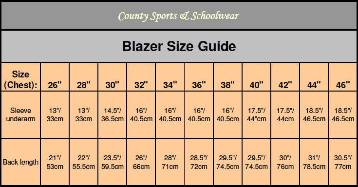 Please refer to the image gallery above for our boys school uniform blazer sizing guide
