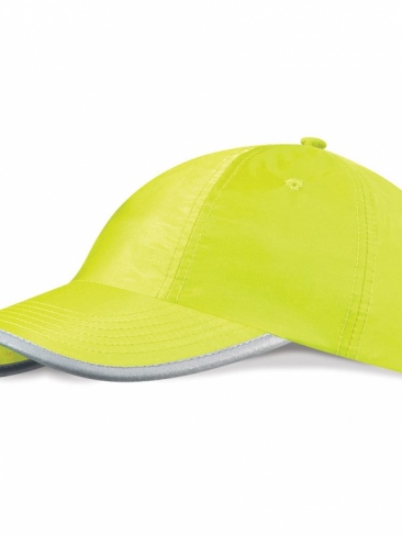 High viz school baseball cap with 3M reflective safety tape around the back fastener and cap peak gives enhanced visibilty protection.