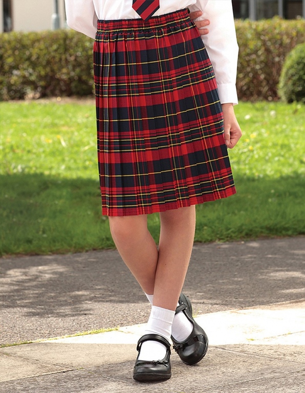 Junior school skirt is available in a generic tartan design to match school uniform coloursi, and is made in an easy care 65% polyester / 35% viscose dye tartan fabric with an elasticated waist for ease of dressing, making this junior school skirt comfortable to wear and a practical item of school wear.