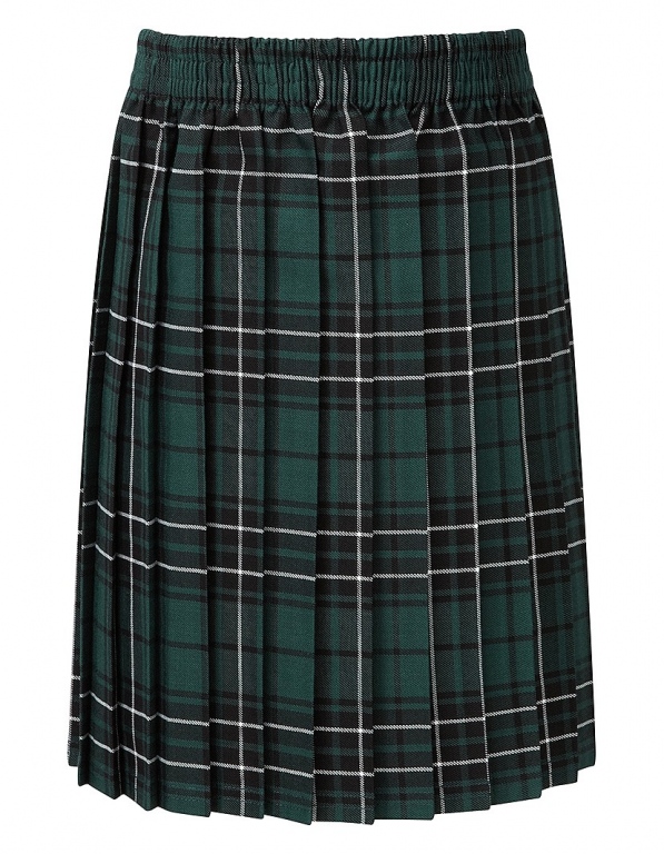 Junior School Tartan Pleat Skirt, Pull On Elasticated Waist, Polyester / Viscose