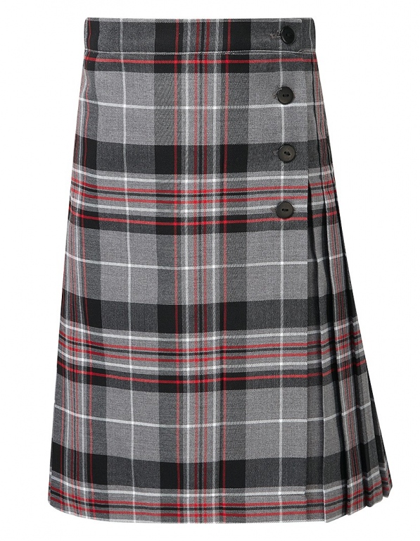 Junior School Tartan Skirt, Kilt Wrap Front with Pleats, Button Waist, Polyester / Viscose