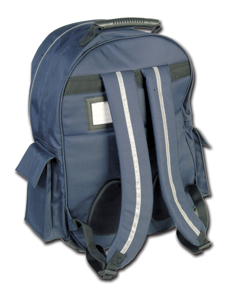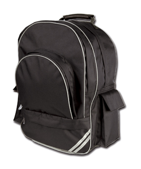 The senior school or college backpack rucksack is heavy duty quality made of 450D coated polyester. The bag has padded lumbar support and shoulder pads for comfort and Blazer Buddy fabric on straps to help protect student’s school uniform.