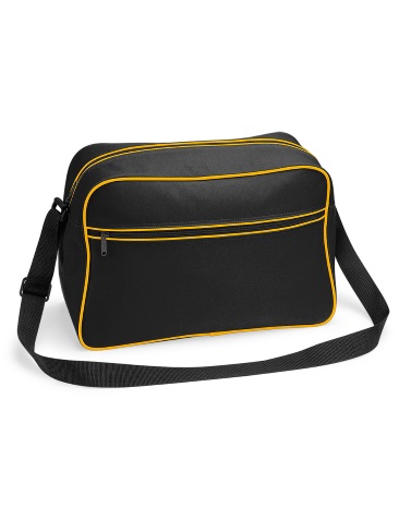 This retro messenger shoulder bag with contrasting piping is a classic style school / college bag. With a large zippered opening at the top, fully adjustable shoulder strap, internal and external zippered pockets there is plenty of room for precious school or college work, sports gear and all the accessories needed for the busy student. Popular colours to complement any smart school wear.