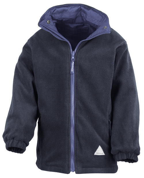 This school reversible waterproof reversible fleece jacket is made from over 25% recycled materials making it environment and eco friendly.