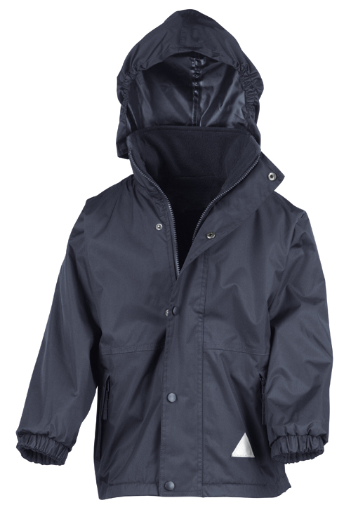 School Uniform Wear Waterproof Coat with Reversible Fleece Lining and Concealed Hood Made From 25% Eco-Friendly Recycled Materials