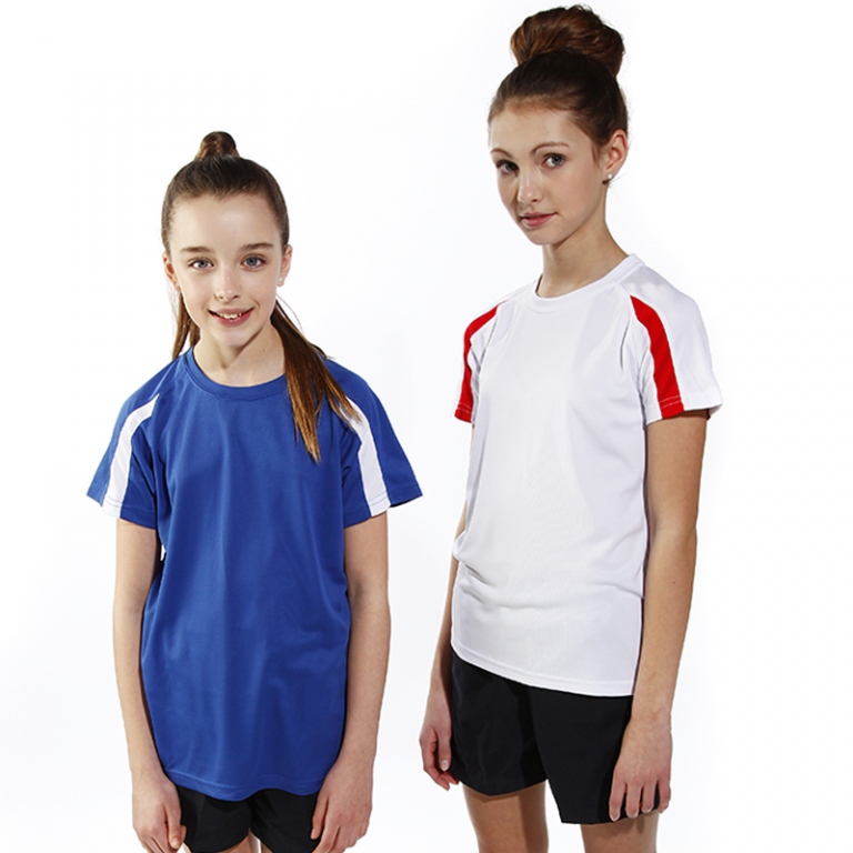 School Sports Wear Contrast Cool T Shirt In School Uniform Colours and Junior Sizes