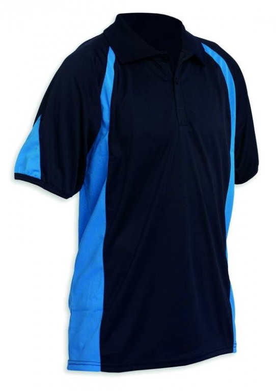 Sport Polo Shirt Colours: White/ Navy, Navy Blue/Amber, Navy Blue/Sky, Black/Scarlet, Black/Amber