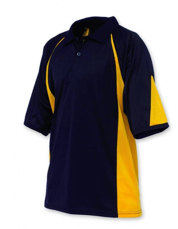 100% Active Stretch Polyester Short Sleeve Polo Shirt with breathable contrast colour inset mesh panels.