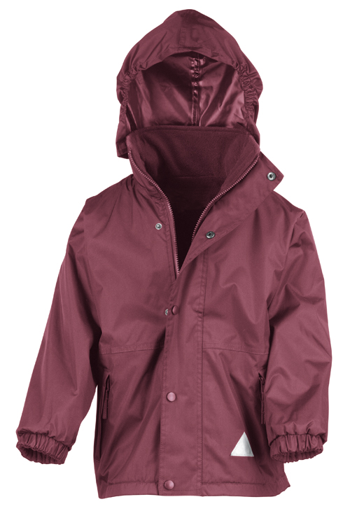 100% waterproof polyester sturdy outer with 280gsm active anti-pilling fleece lining – stylishly designed to be reversed giving 2 jackets in 1.