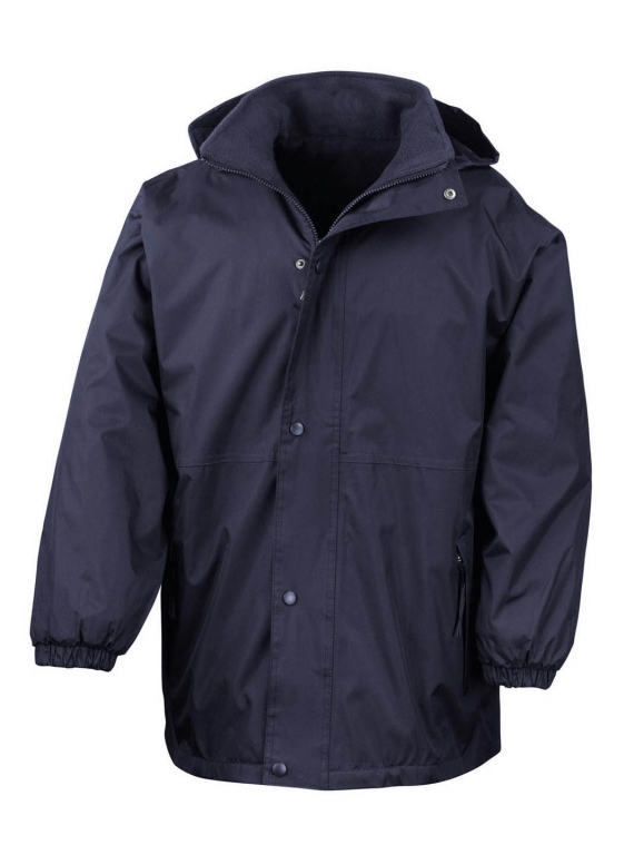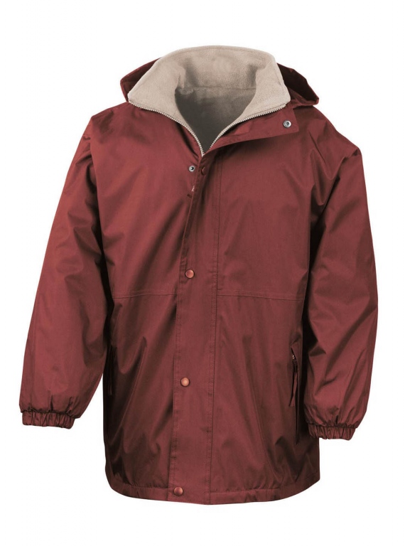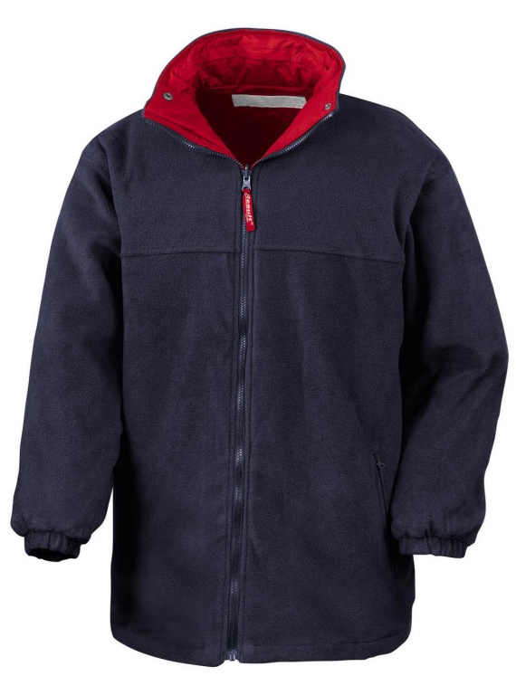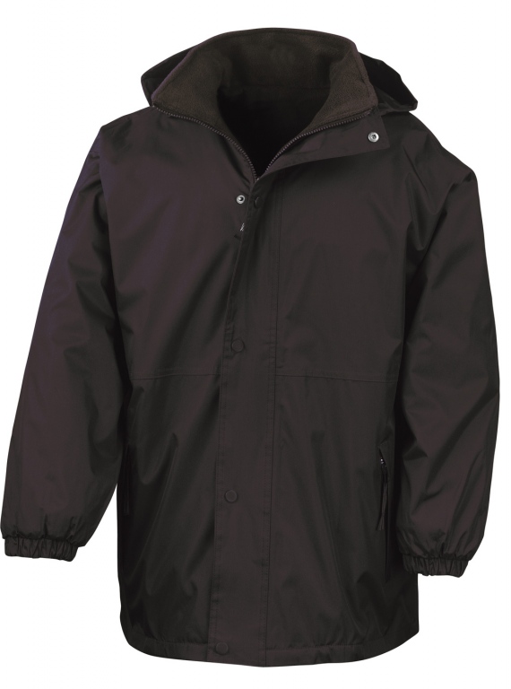 100% waterproof polyester sturdy outer with 280gsm active anti-pilling fleece lining – stylishly designed to be reversed giving 2 jackets in 1.