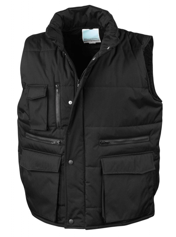 Work wear body warmer gilet, water repellent, windproof with insulating padded wadding and 9 multi purpose pockets